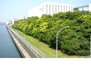 川崎臨海工業地帯にある家庭品生産工場です。造成された樹木の豊かな緑地帯は“自然の森”を感じさせるまで成長し、都心の喧噪を忘れる静けさで社員の憩いの場となっています。200種以上の植物・生物、珍しいジャコウアゲハの羽化・生息が確認され、見学を通じた環境教育や多摩川水域の環境保全に貢献しています。