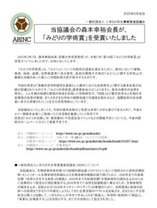 当協議会といたしましても、今回の森本会長のご受賞は非常に大きな喜びであると共に、今後も