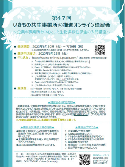 第47回いきもの共生事業所®推進オンライン講習会~企業の事業所を中心とした生物多様性保全の入門講座~