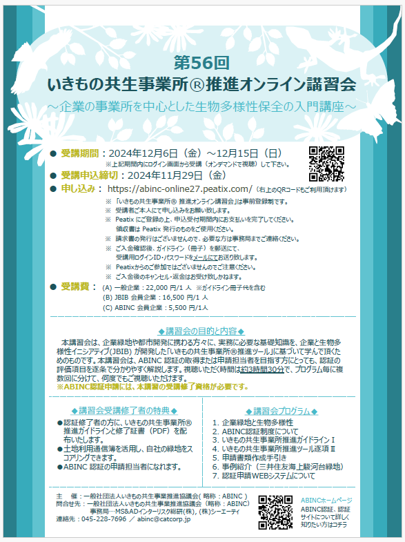 第58回いきもの共生事業所®推進オンライン講習会のご案内