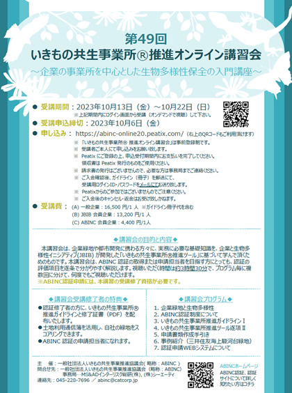 第49回いきもの共生事業所®推進オンライン講習会~企業の事業所を中心とした生物多様性保全の入門講座~