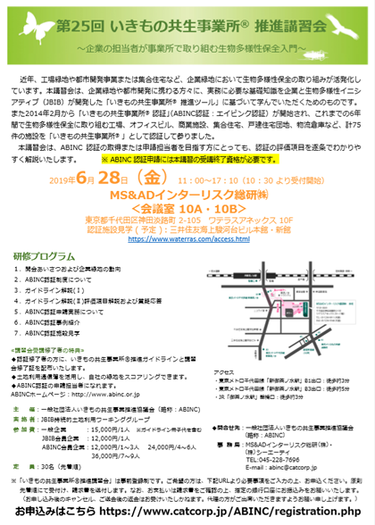 第25回いきもの共生事業所R推進講習会の開催が決定いたしました。