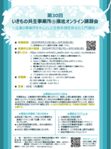 「いきもの共生事業所Ⓡ推進オンライン講習会」~with コロナを見据えて~開催決定!