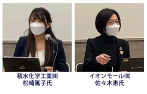 続く認証緑地の事例紹介では、積水化学工業株式会社 松崎篤子氏よりABINC ADVANCEを取得されたあさかリードタウンでの取り組みを、イオンモール株式会社 佐々木恵氏より複数のイオンモールでの取り組みを事例としてご発表いただき、認証取得の効果や課題をお示しいただきました。